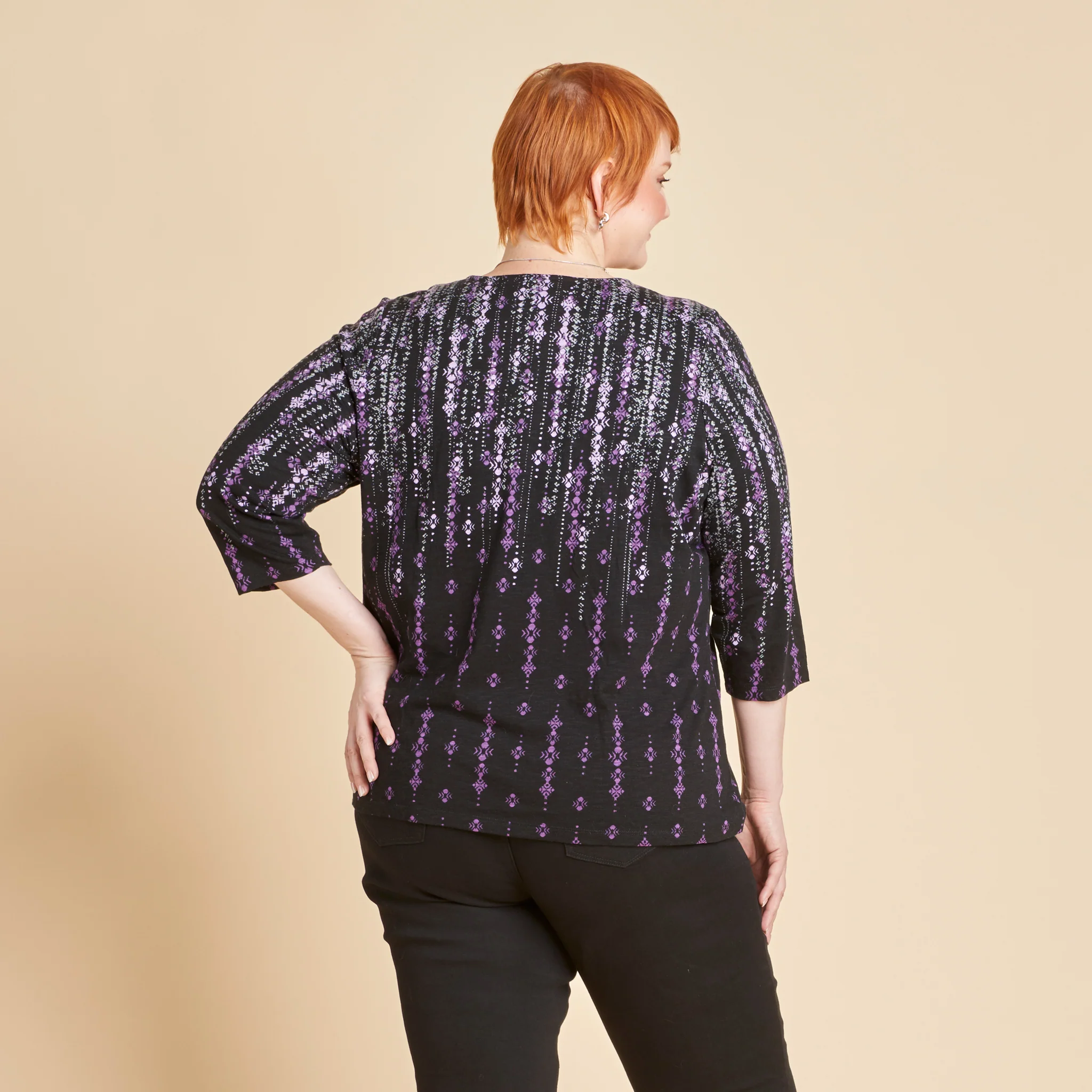 Abstract Print Scoop Neck ¾ Sleeve Tee