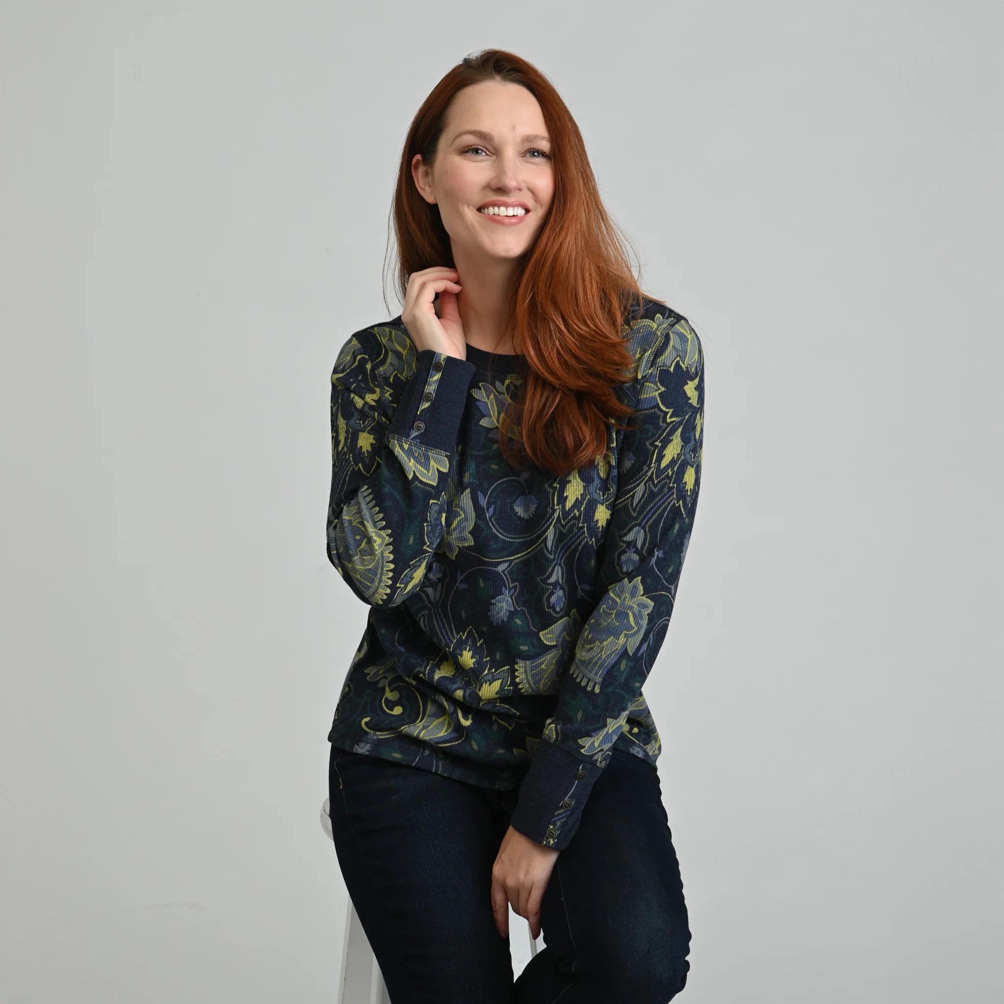 Add a pop of personality to your everyday look with our Printed Button Cuff Thermal Tee, featuring an exclusive C&B print and stylish extra-wide cuffs with button details. Perfect on its own or layered, it comes in three eye-catching colorways to suit every mood.