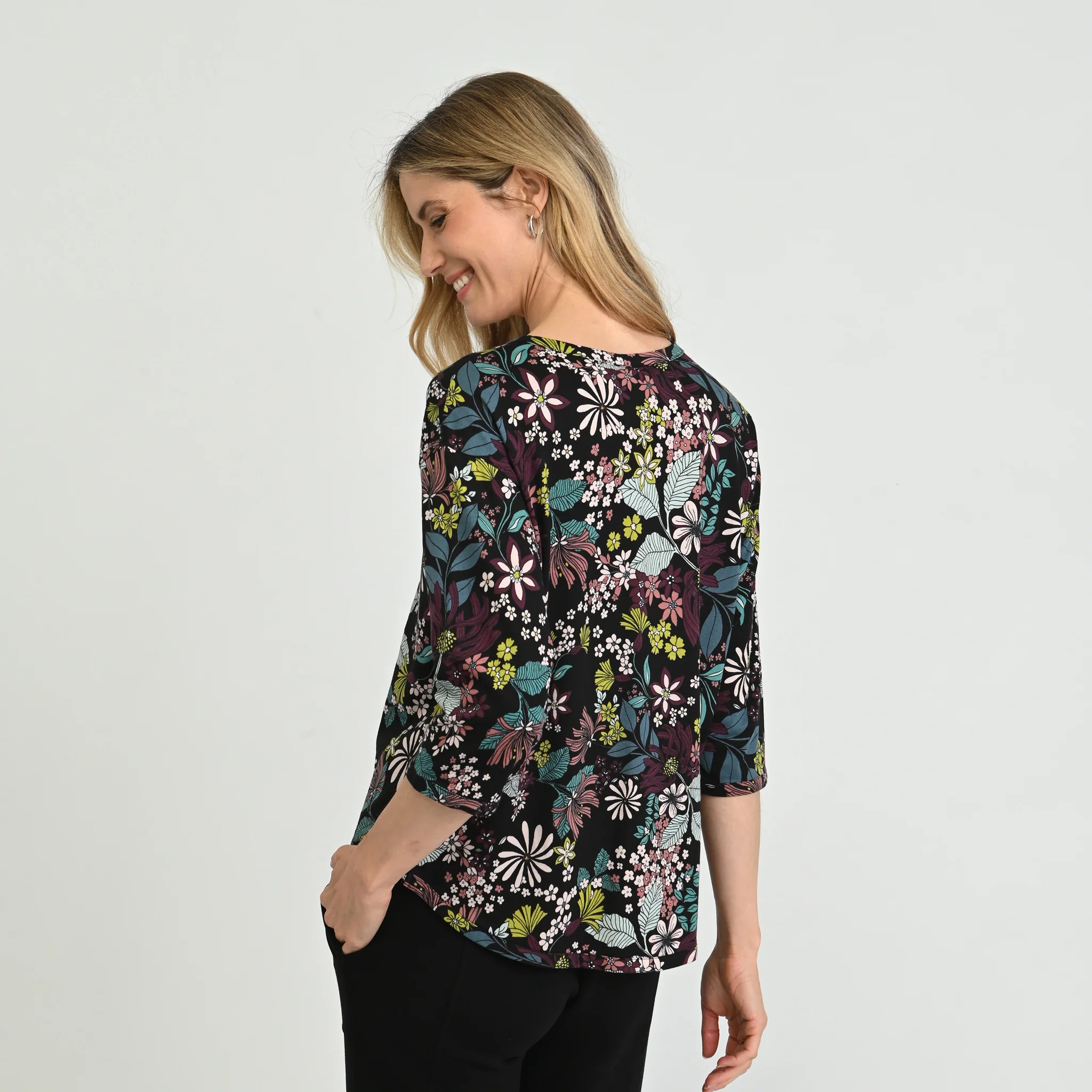 Brighten your everyday style with our Relaxed Restyled Floral Print 3/4 Sleeve Tee, featuring an exclusive C&B print and a flattering high-low hem for added coverage. Perfect on its own or layered with your favorite Relaxed Restyled pieces, it's as versatile as it is beautiful.