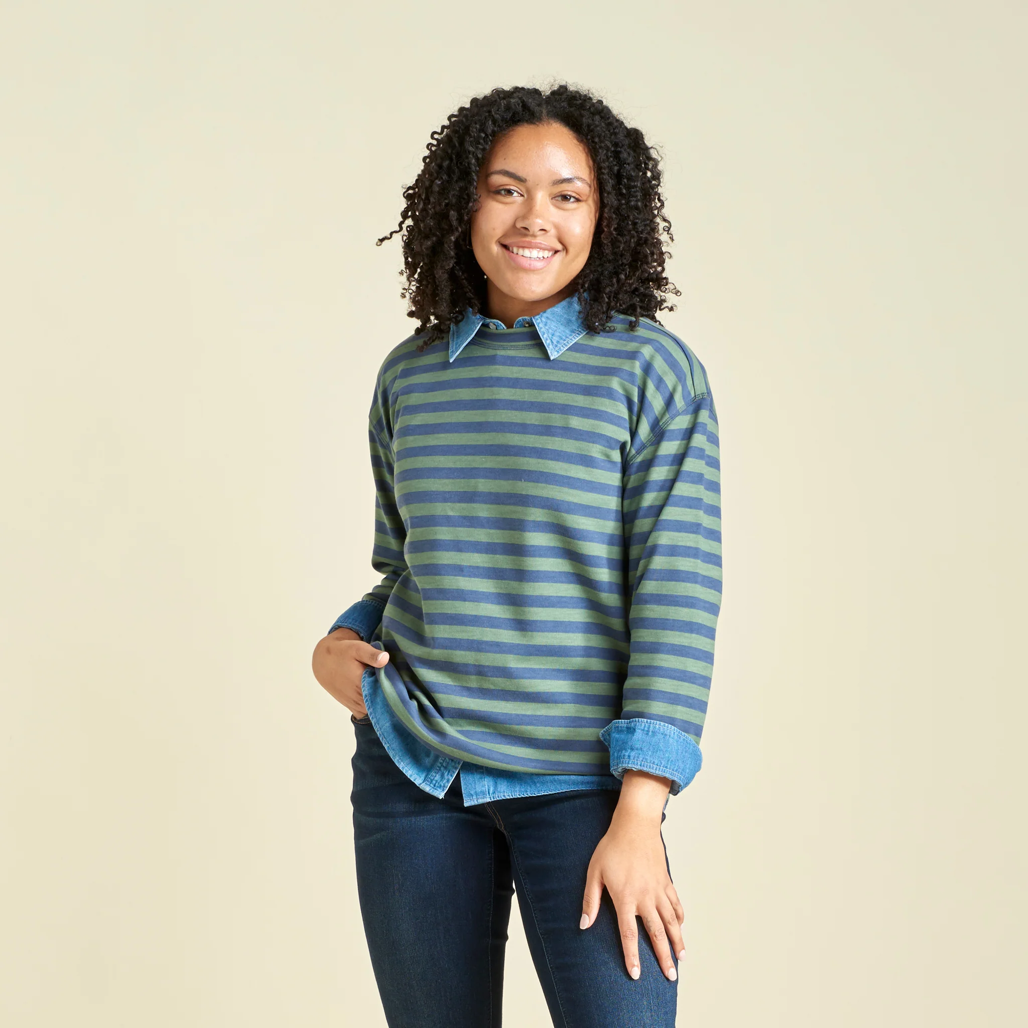 Stripe Crew Neck Long Sleeve Sweatshirt